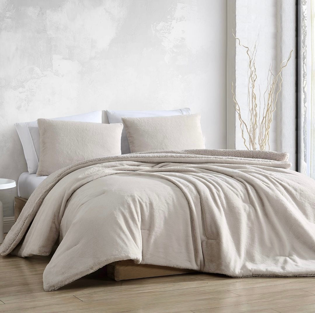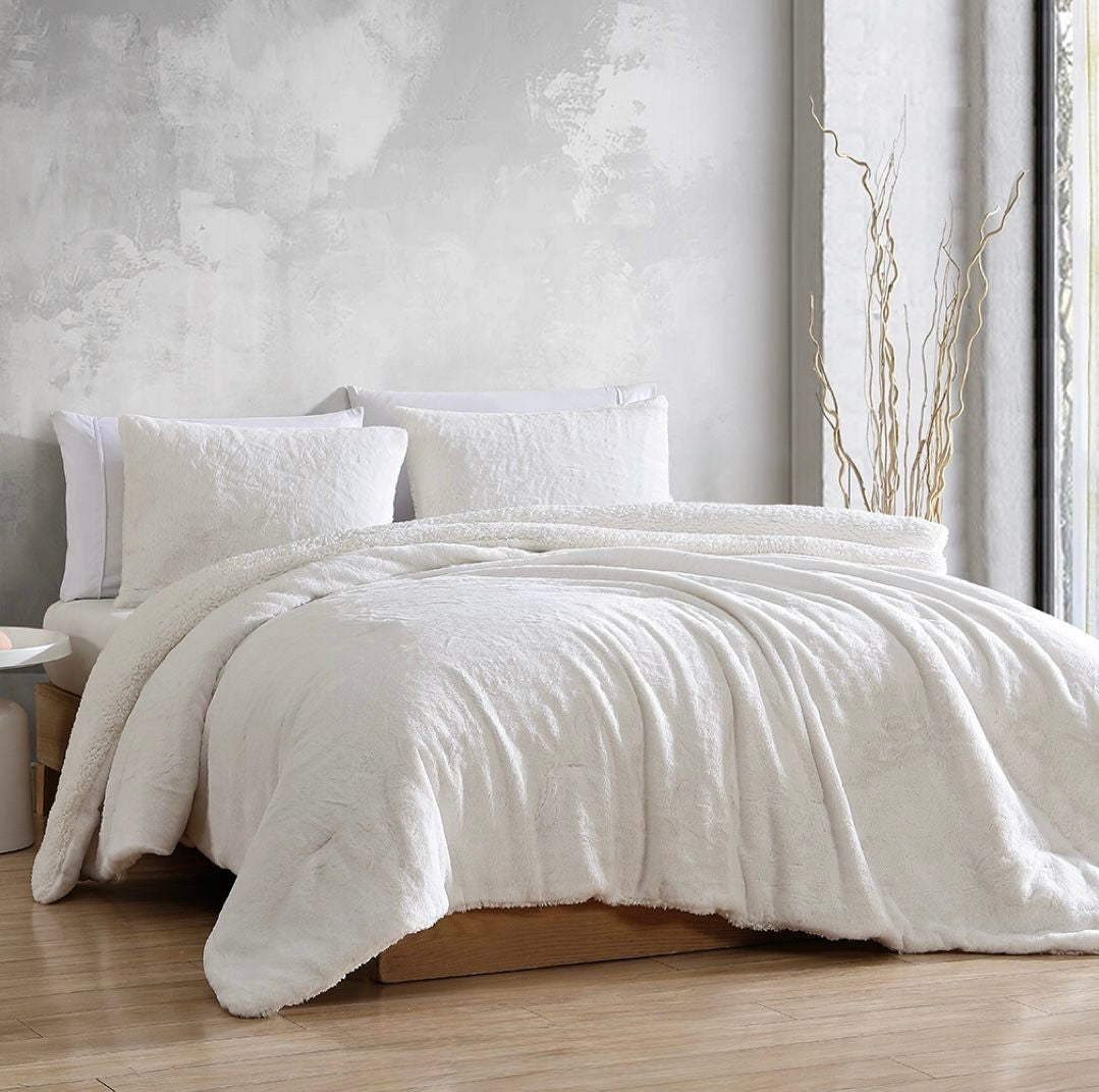 Set de edredón de faux-fur ideal para la temporada otoño-invierno, usálo por si solo o haz layering para hacer tu cama más cálida y acogedora.