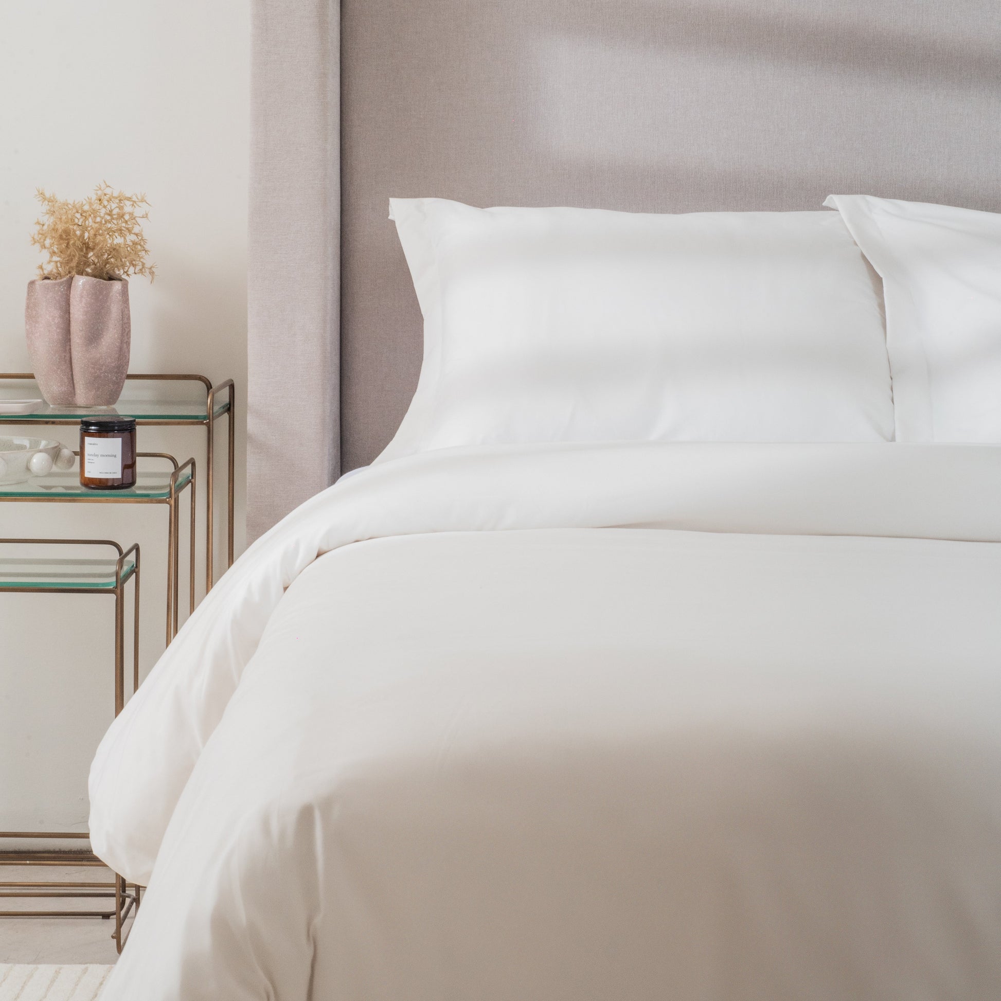 Nuestro Set de Funda de Duvet Basique está confeccionado en microfibra premium de tacto algodón, diseñada para ofrecer suavidad inmediata, ligereza y alta durabilidad en el uso diario.
